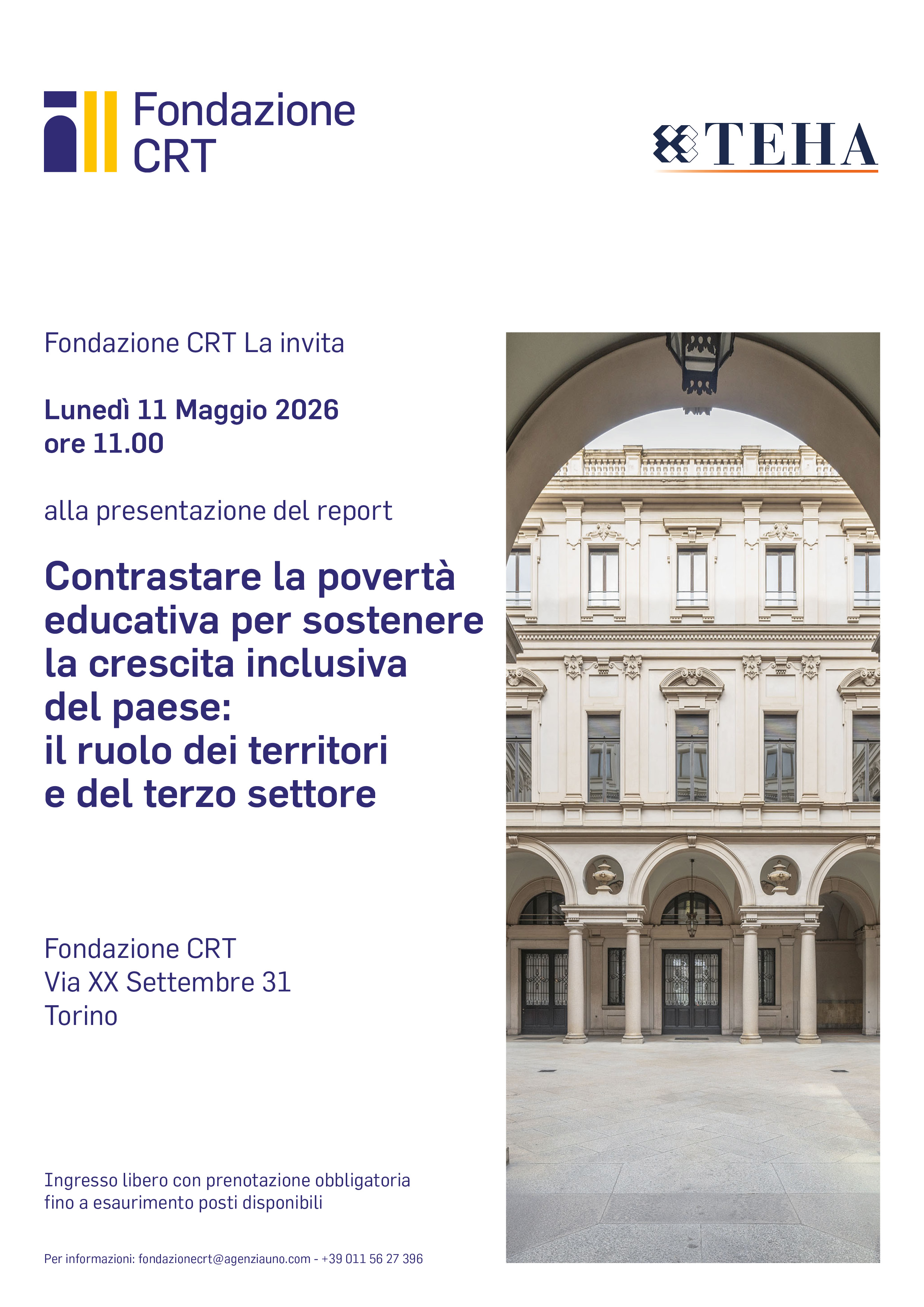 Ingresso libero con prenotazione obbligatoria fino ad esaurimento dei posti disponibili.
